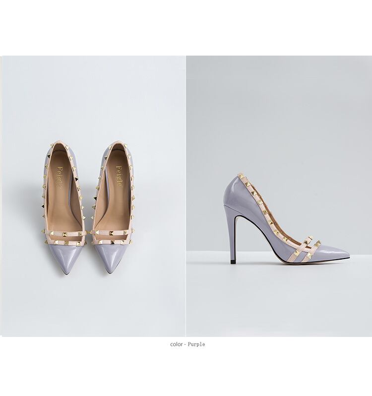 色:ワイン、4種類のヒールはオプション,ライトブルー、ヒールの高さは4種類オプション,ライトパープル、ヒールの高さは4種類オプション,ヌードピンク、ヒールの高さは4種類ご用意,黒の4種類のヒールの高さ