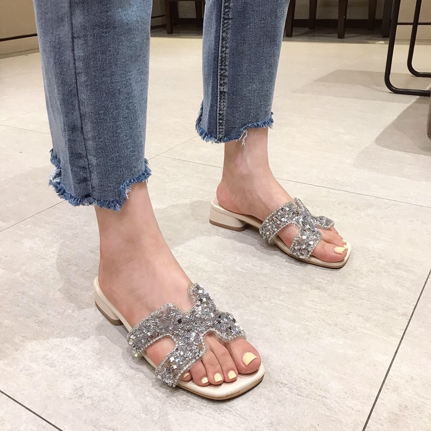 ☆★☆ 新品 ラインストーンミュール大人女子☆ 靴 シューズ ☆★☆ 韓国◆オルチャン◆メッシュ◆ベージュ◆スニーカー◆ヒール◆ビジネス◆サンダル◆アースカラー◆夏◆秋◆冬◆厚底◆ブーツ◆パンプス 3A7108510