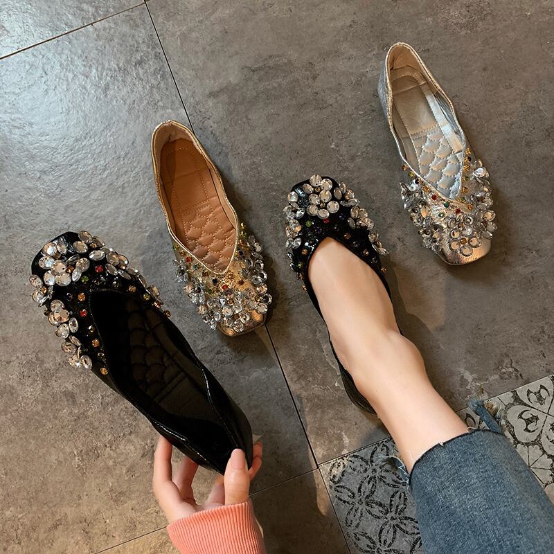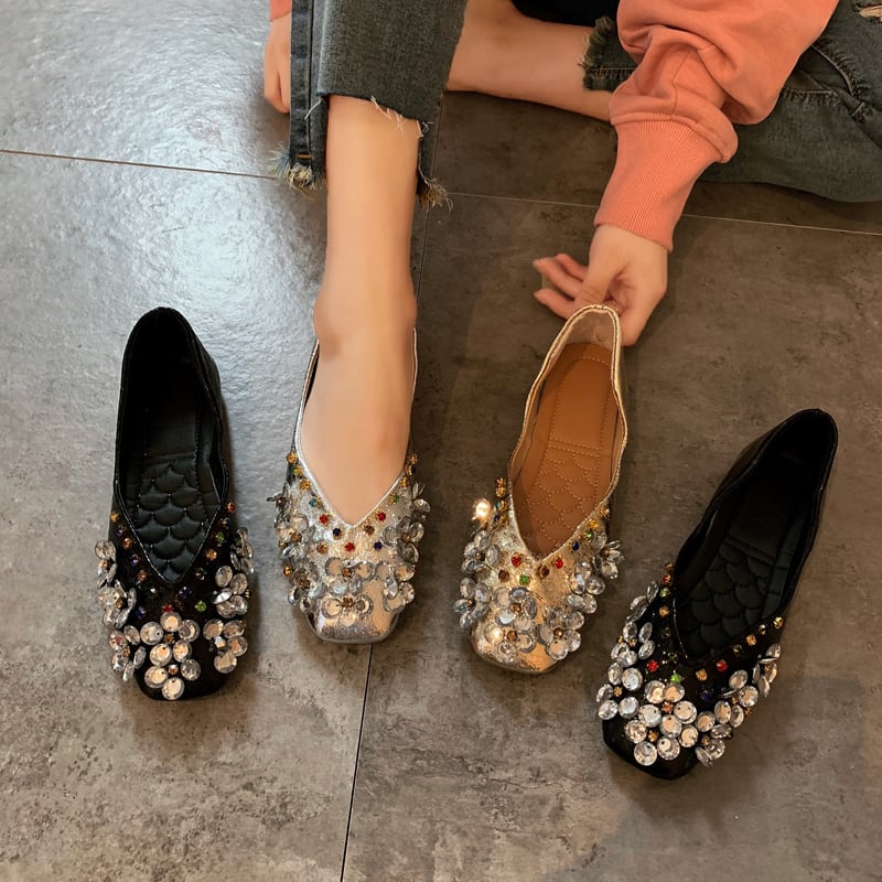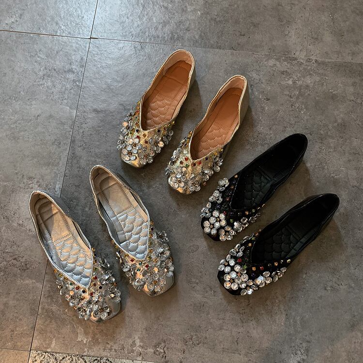 ☆★☆ 新品 ラインストーン花柄ビジューぺたんこパンプス サンダル 靴 シューズ ミュール スクウェア ☆★☆ 韓国◆オルチャン◆メッシュ◆ベージュ◆スニーカー◆ヒール◆ビジネス◆サンダル◆アースカラー◆夏◆秋◆冬◆厚底◆ブーツ◆パンプス 3A8389722