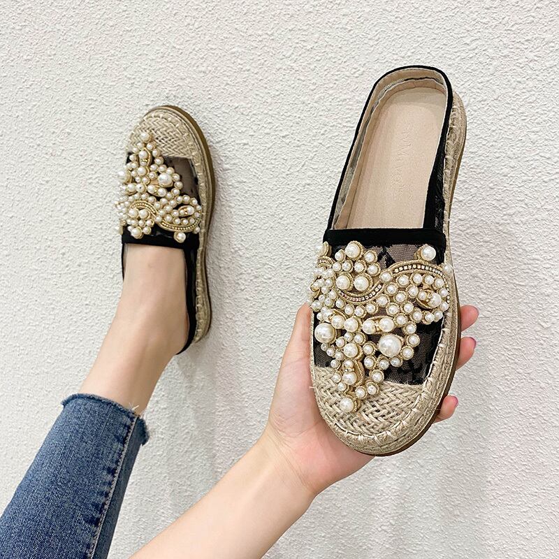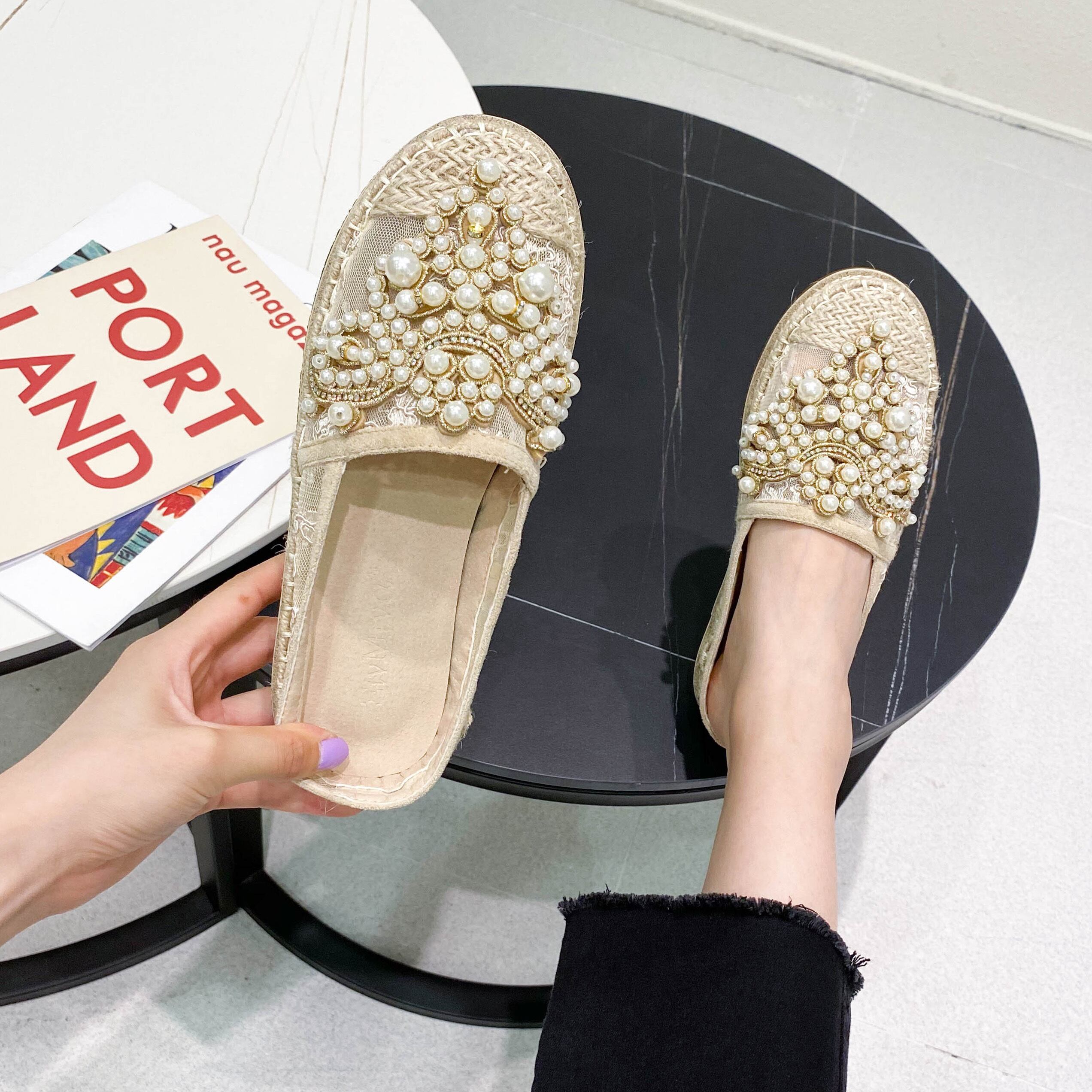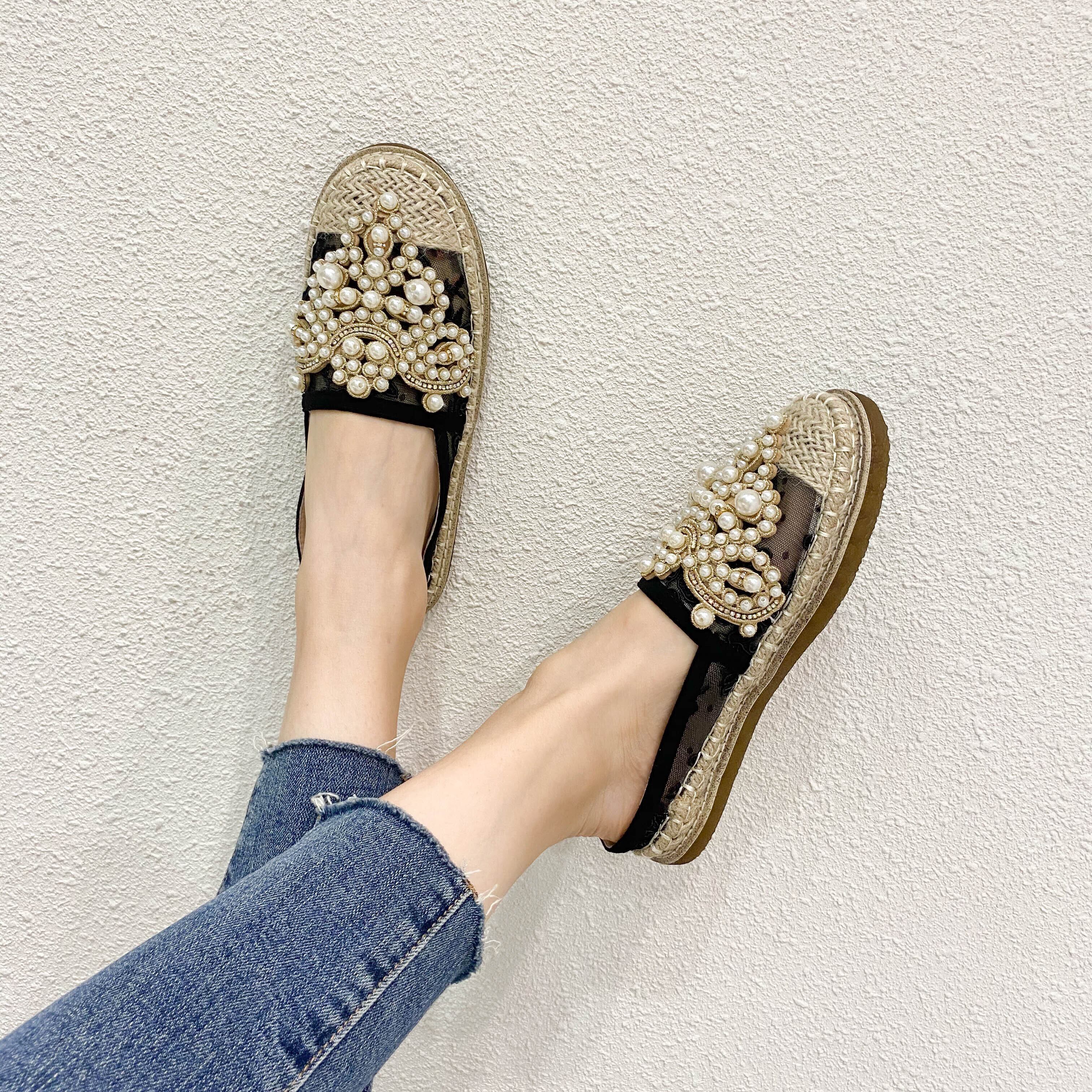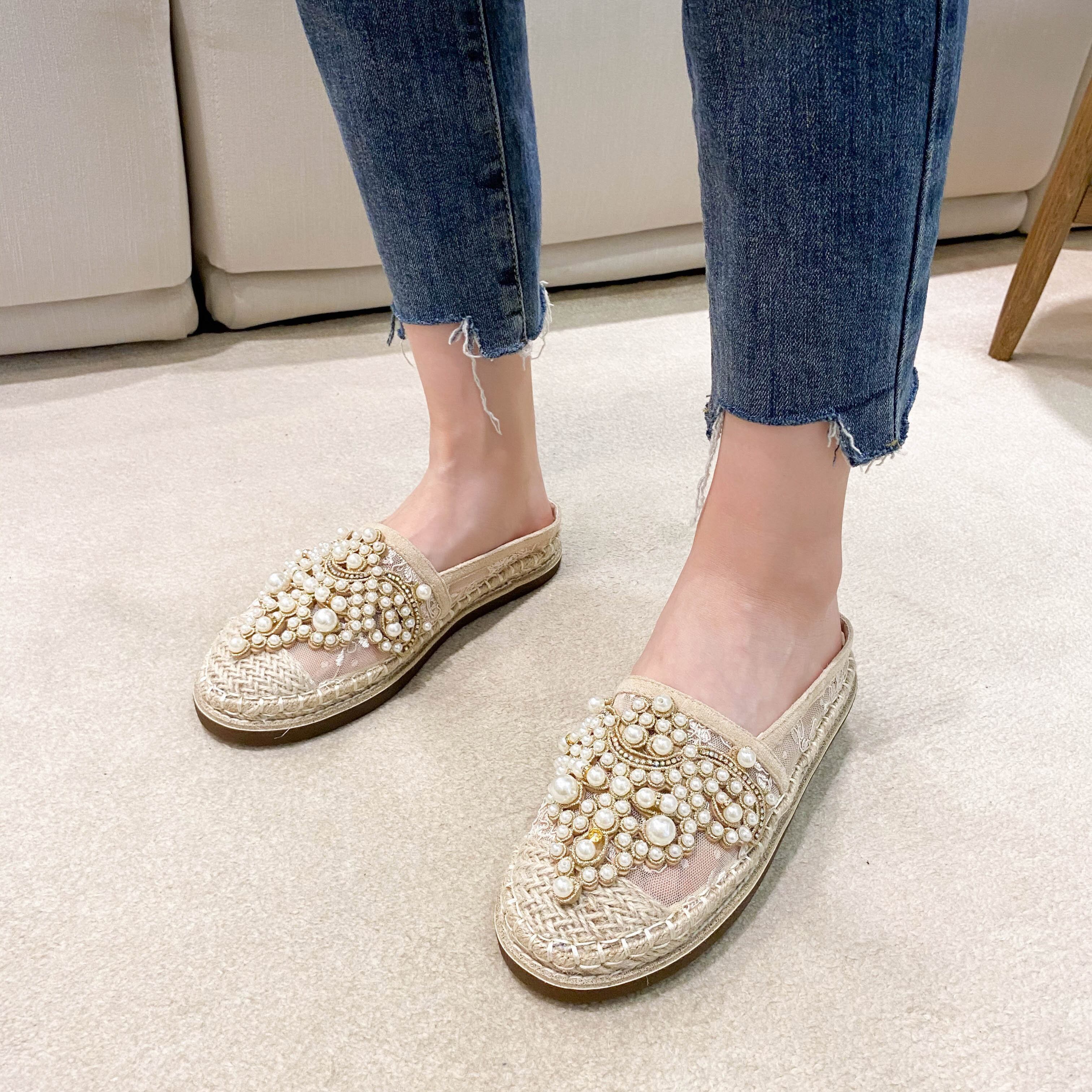☆★☆ 新品 ミュール大人女子☆パール 靴 シューズ 真珠 ☆★☆ 韓国◆オルチャン◆メッシュ◆ベージュ◆スニーカー◆ヒール◆ビジネス◆サンダル◆アースカラー◆夏◆秋◆冬◆厚底◆ブーツ◆パンプス 3A3581260
