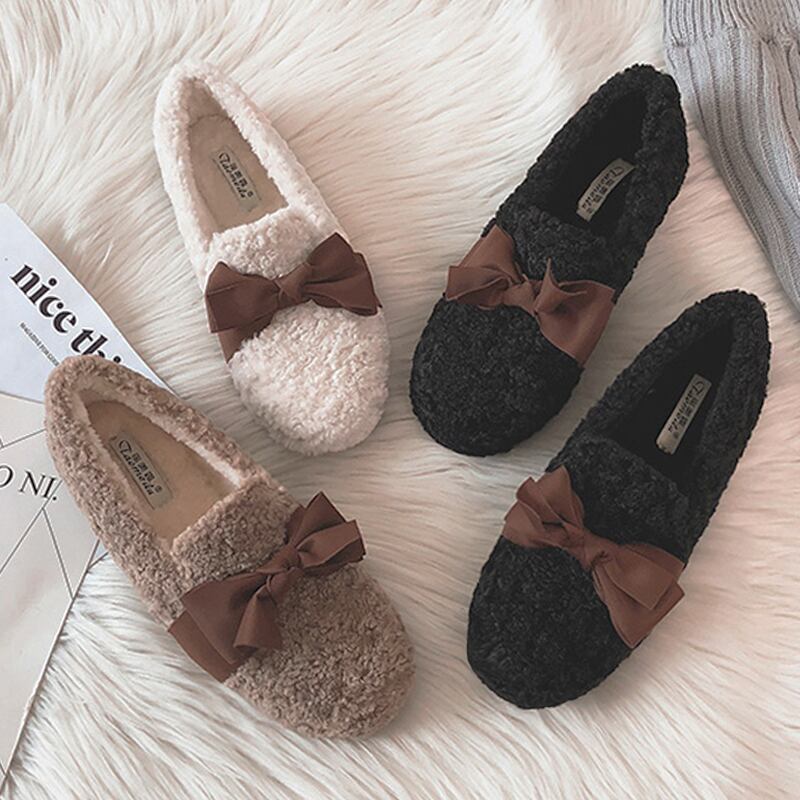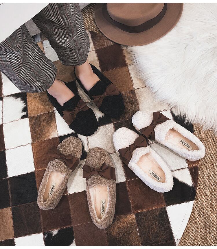 ★新品リボンもこもこウィンターシューズ 靴 秋冬 ☆★☆ 韓国◆オルチャン◆メッシュ◆ベージュ◆スニーカー◆ヒール◆ビジネス◆サンダル◆アースカラー◆夏◆秋◆冬◆厚底◆ブーツ◆パンプス 3A19297885163
