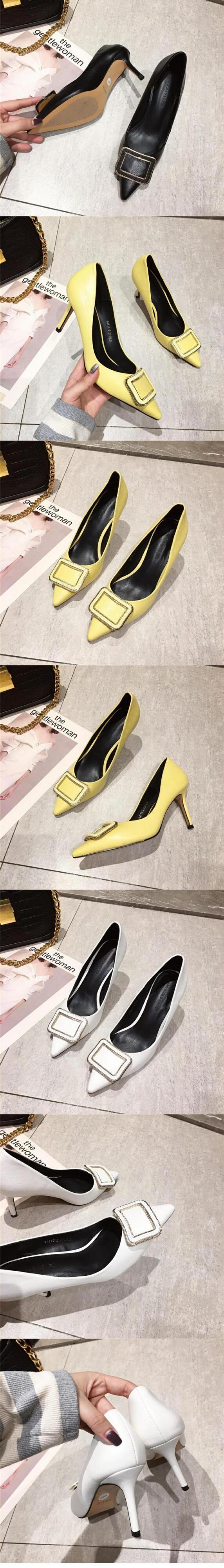 ★新品 バックル白ヒールシングルレザー 靴 シューズ ホワイト ハイヒール スクウェア ☆★☆ 韓国◆オルチャン◆メッシュ◆ベージュ◆スニーカー◆ヒール◆ビジネス◆サンダル◆アースカラー◆夏◆秋◆冬◆厚底◆ブーツ◆パンプス 3A65028437691