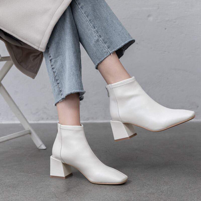 ★新品 レザーショートブーツバックジッパー 靴 シューズ スクウェア ☆★☆ 韓国◆オルチャン◆メッシュ◆ベージュ◆スニーカー◆ヒール◆ビジネス◆サンダル◆アースカラー◆夏◆秋◆冬◆厚底◆ブーツ◆パンプス 3A21266068882