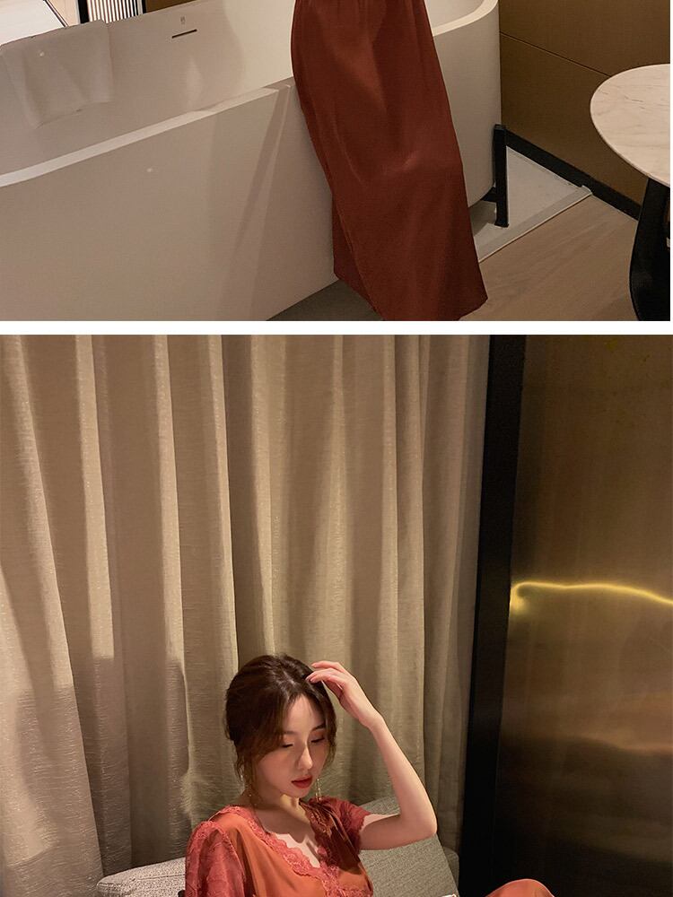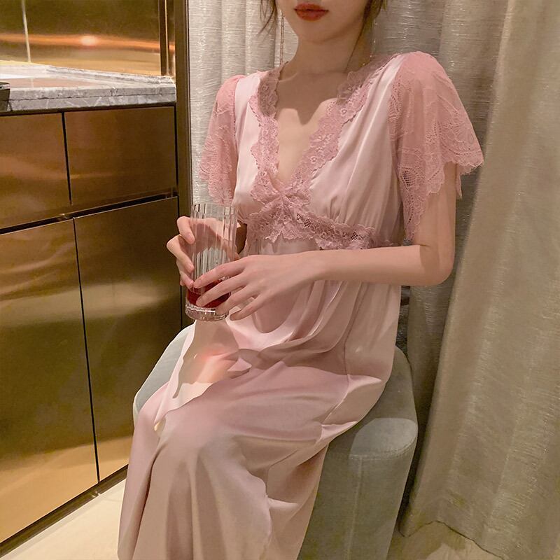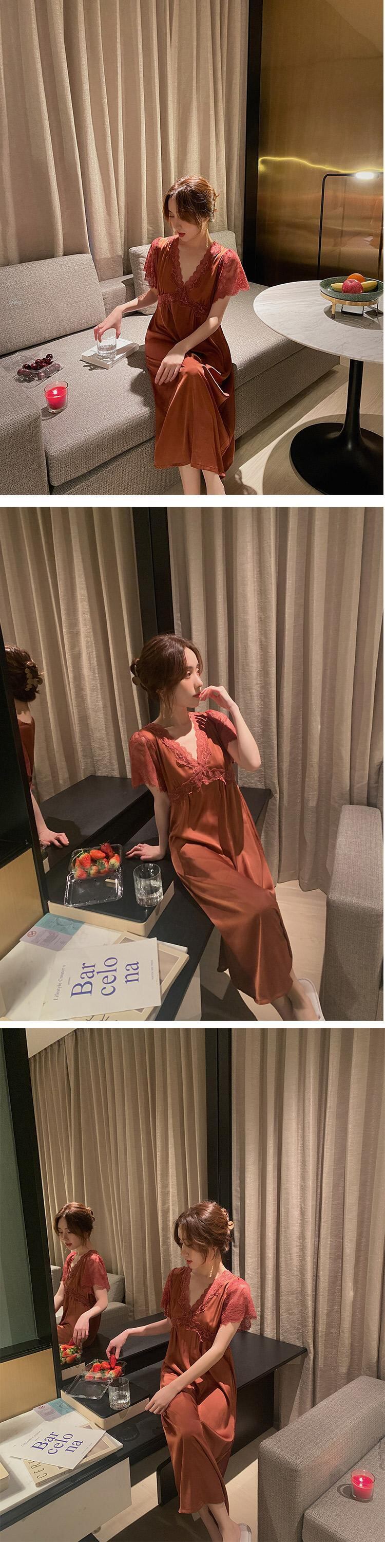 色:チェストパッド付きピンクのレース半袖ネグリジェ,胸パッドキャラメル付きレース半袖ネグリジェ,胸パッド赤のレース半袖ネグリジェ