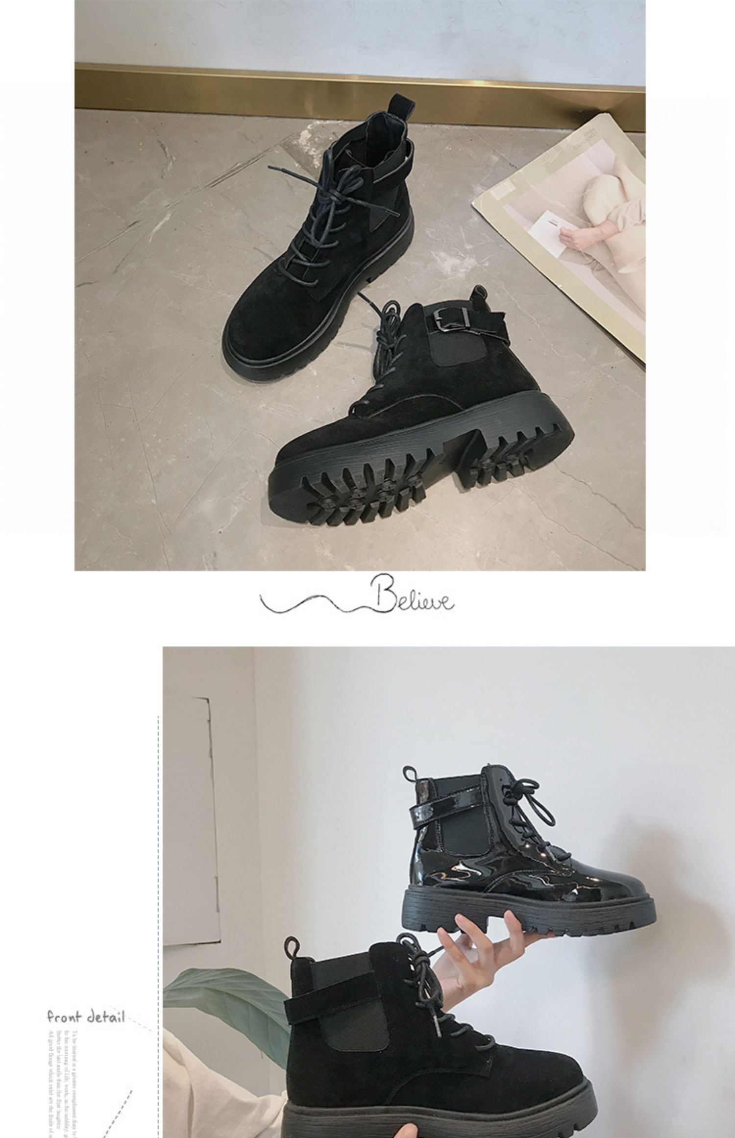 色:黒い鏡,黒のスエード